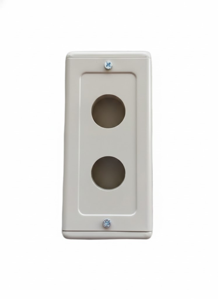 La caja HY-2502 es la solución ideal para instalaciones de control industrial que requieren dos dispositivos de mando. Fabricada en acero laminado de alta resistencia, esta caja ofrece protección y organización profesional para tus componentes de control.