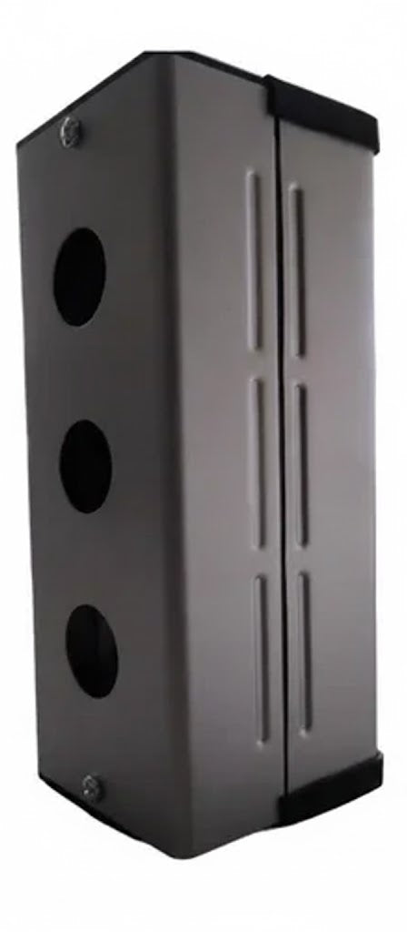 La caja para botones HY-2503 de HANYOUNG NUX es la solución profesional para montaje de múltiples pulsadores y controles industriales de 25mm de diámetro, diseñada con 3 orificios para instalación de estaciones de control completas.