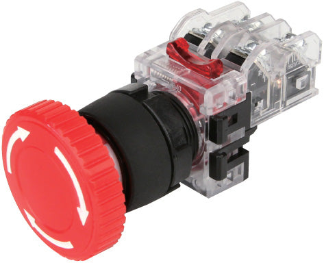 MRE-AR1R Pulsador Emerg 30mm Bloqueo Presión Desbloqueo Giro 1NC 1NO