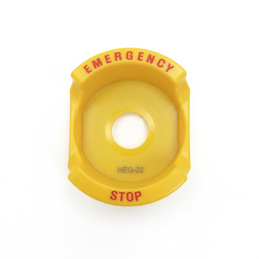 Protección industrial confiable para controles críticos. La guarda plástica amarilla HEG-22 de HANYOUNG NUX está diseñada para prevenir activaciones accidentales de botones y pulsadores de 22mm en entornos industriales.