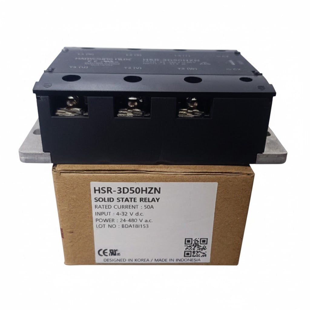 HSR-3D50HZN relevador edo solido ssr 3 fases 50a input 4-32vdc output 24-480vac s/disipador cruce cero