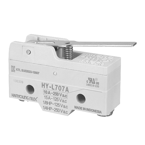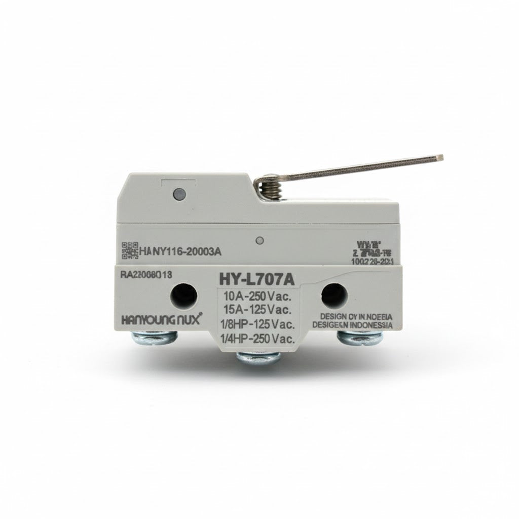El microswitch HY-L707A de HANYOUNG NUX es un interruptor de precisión con maneta corta, diseñado para aplicaciones industriales que requieren alta sensibilidad y detección precisa en espacios reducidos. Su acción snap garantiza operación confiable en sistemas de automatización.