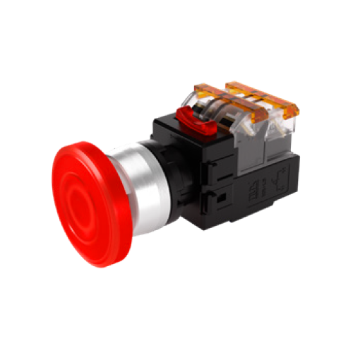 Ideal para sistemas de paro de emergencia en maquinaria industrial, equipos de manufactura, líneas de producción, transportadores, prensas, equipos de procesamiento y aplicaciones que requieren paro de emergencia con protección extendida contra activación accidental y señalización visual luminosa.