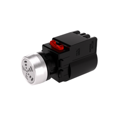Ideal para sistemas de alarma en maquinaria industrial, señalización de eventos en equipos de manufactura, notificaciones sonoras en líneas de producción, alertas en transportadores, señalización de procesos, equipos de seguridad y aplicaciones que requieren señalización audible con protección extendida contra activación accidental.