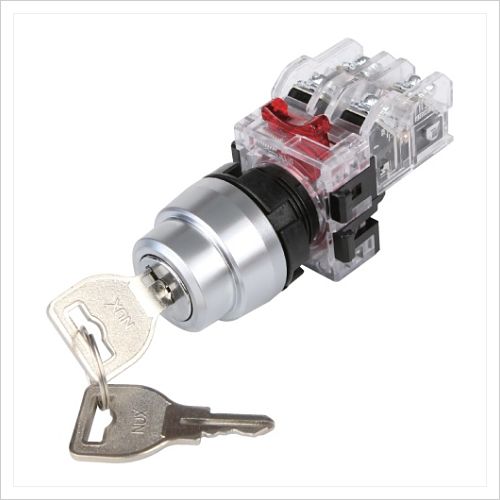 MRK-R3A2C Selector con Llave 3 Posiciones 22mm 2NO 2NC Retiro Centro | HANYOUNG NUX