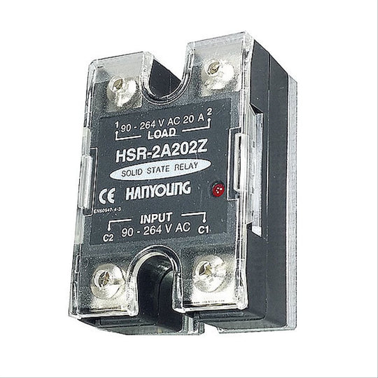 HSR-2A20LZN relevador edo solido ssr simple fase 20a input 90-240vac output 24-240vac s/disipador cruce cero
