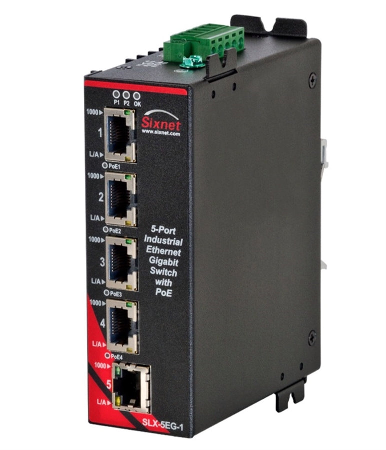 El Red Lion Sixnet SLX-5EG-1 es un switch Gigabit Ethernet de 5 puertos, diseñado para un rendimiento fiable en entornos de redes industriales. SLX-5EG-1