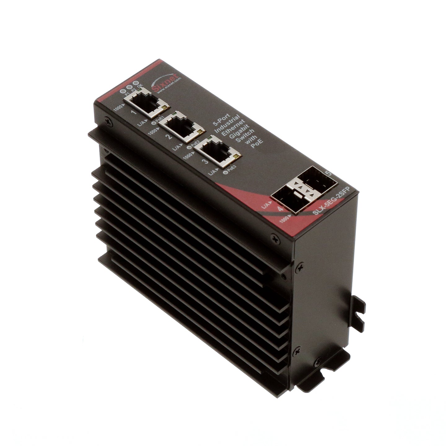 El switch Gigabit Ethernet Red Lion Sixnet SLX-5EG-2SFP (2 + 3G) de 5 puertos está diseñado para ofrecer un rendimiento excepcional y una fiabilidad superior en entornos de redes industriales. SLX-5EG-2SFP