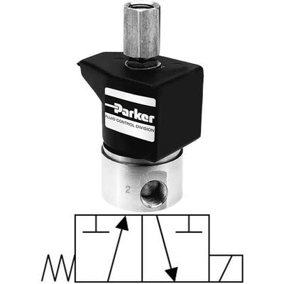 Parker Skinner - Válvula a presión de acero inoxidable de acción directa, 3 vías, normalmente cerrado, 1/4" NPT