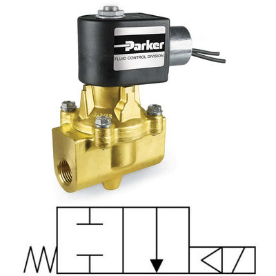 7321HBN4UN00 Válvula a presión de latón Parker Skinner de 2 vías, normalmente cerrado, 1/2" NPT, con piloto interno y accionamiento por piloto