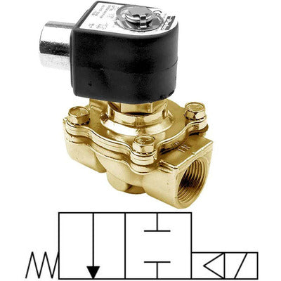 7321GBN99V00 Parker Skinner - Válvula solenoide de latón de 2 vías, normalmente cerrada, 2" NPT, con piloto interno, conducto de 110/50-120/60 V CA