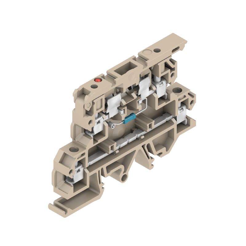 KDKS 1EN/LLC 30-70V AC/DC - Borne portafusibles, Conexión brida-tornillo, Beige oscuro, 4 mm², 6.3 A, 70 V, Número de conexiones: 4, Número de pisos: 2, TS 32, TS 35 No. de parte: 9908510001