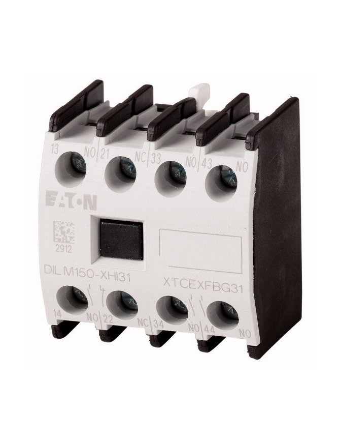 Módulo de contactos auxiliares, con contactos opuestos enclavados, Función: para aplicaciones estándar, 2 polos, Técnica de conexión: terminales de tornillo, Corriente operativa nominal AC-15 220 V 230 V 240 V: Ie = 6 A, Corriente operativa nominal AC-15 380 V 400 V 415 V: Ie = 4 A, Contactos N / O = Normalmente abierto: 2 N / O, Tipo de montaje: Fijación delantera, Para usar con: DILM40, DILM50, DILM65, DILM72, DILM80, DILM95, DILM115, DILM150, DILM170, DILMP63, DILMP80, DILMP125, DILMP160, DILMP200, DILMF40, DILMF50, DILMF65, DILMF80, DILMF95, DILMF115.