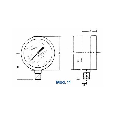 11/51 Caja lámina negra carátula 2" conexión inf. bronce 1/4" NPT 0-400psi