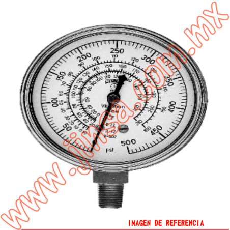MANOMETRO MEDIDOR DE REFRIGERACION CARATULA PLASTICO DE 2.5" CONECCION POSTERIOR 1/8" NPT CON RANGO DE 0-500 KG/CM2