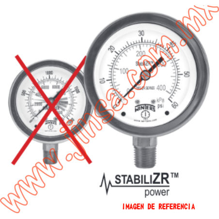 PFQ915ZRR1R3 MANOMETRO PUNTERO ESTABILIZADOR CARATULA DE 2.5" CONEXION POSTERIOR 1/4" NPT 0-6000 PSI / 0-400 KG/CM