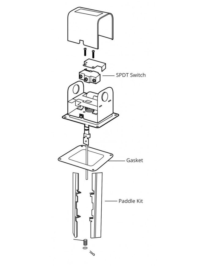 El número de modelo AF1-S de McDonnell & Miller es un interruptor de flujo de aire a presión de 120 voltios, unipolar, tiro doble, para requisitos de velocidad media y alta en aplicaciones de uso general. Cuenta con una paleta de acero inoxidable que se ajusta a un ducto de 8 ". La paleta también se puede recortar para que se ajuste a 6". La temperatura máxima de este interruptor es de 300 ° F con una velocidad de 2500 fpm e incluye un tornillo de sensibilidad para un fácil ajuste del flujo.