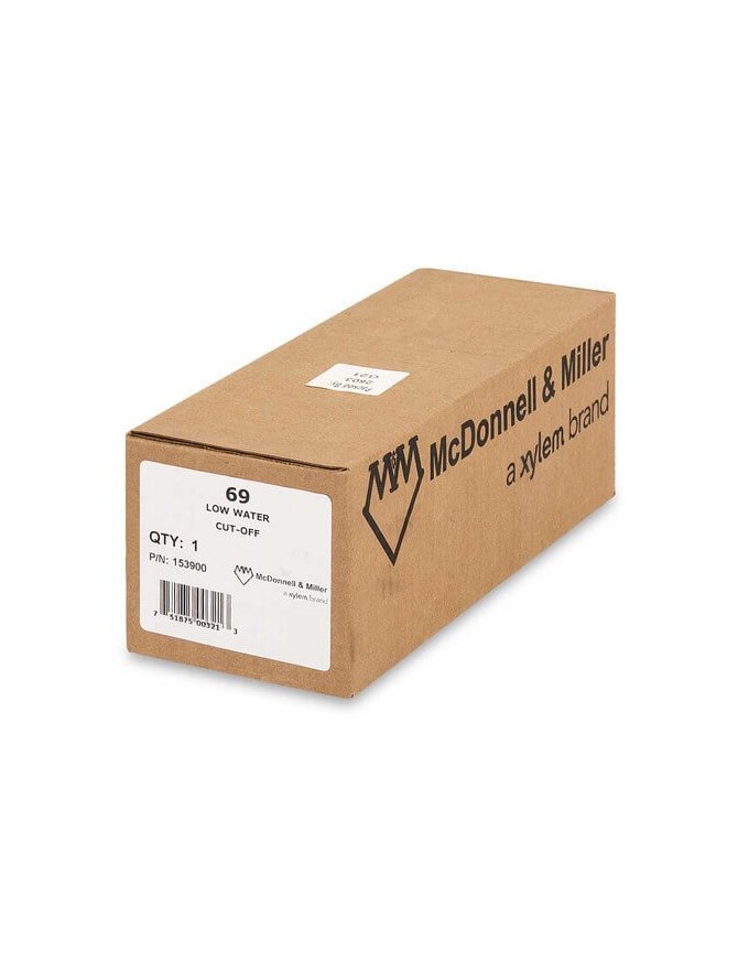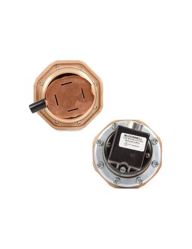 El modelo número 69 de McDonnell & Miller es un sistema de corte de agua baja con flotador para el montaje en tomas laterales de calderas de vapor de 2-1 / 2 ". Este control cuenta con interruptores duales de 120 voltios para el suministro de agua y alarma de baja presión o alimentadores eléctricos de agua. Su presión máxima es de 20 psi y tiene una longitud de inserción de 4-1 / 8 ".