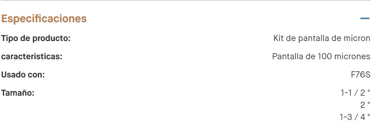 Kit de pantalla para el filtro de agua F76S de 1-1 / 2 "a 2". El tamaño de la pantalla es de 100 micras.