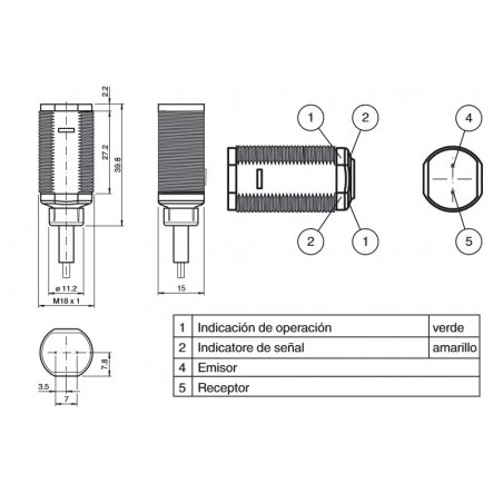 GV18/115/120 (803794) SENSOR DE PROXIMIDAD RECEPTOR CON CABLE
