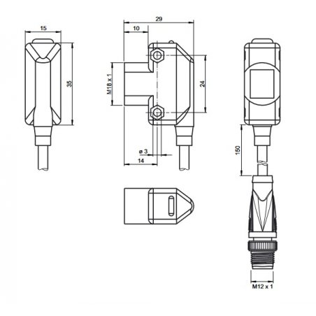 - Fijación frontal roscada M18, alternativo con agujeros de taladro laterales