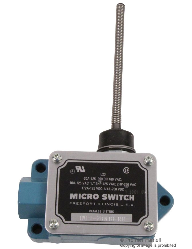BAF1-2RN18-RH Interruptor en caja de alta capacidad, Series BAF/DTF MICRO SWITCH, actuador con palanca oscilante