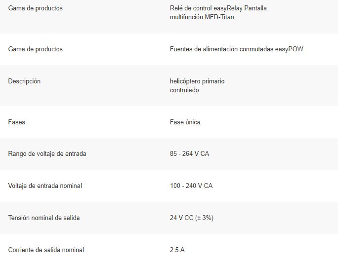 110941 Unidad de fuente de alimentación de modo conmutado, 100-240VAC / 24VDC, 2.5A, monofásica, controlada - EASY500-POW