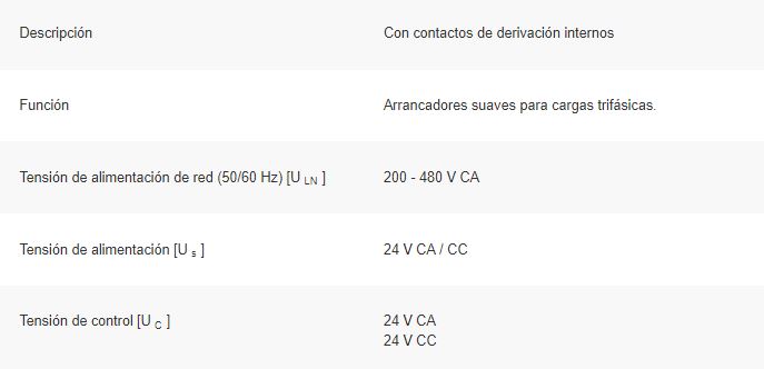 Arrancador suave, Descripción: Con contactos de derivación internos, Función: Arrancadores suaves para cargas trifásicas, Tensión de alimentación de red (50/60 Hz): ULN = 200-480 V CA, Tensión de alimentación: Us = 24 V CA / CC, Control voltaje: UC = 24 V CA, 24 V CC, clasificación asignada del motor (conexión estándar, en línea) a 400 V, 50 Hz: P = 11 kW, a 460 V, 60 Hz: P = 15 HP, corriente operativa nominal AC-53: Ie = 24 A, Voltaje operativo nominal: Ue = 200 V, 230 V, 400 V, 480 V, Conexión a SmartWire-DT: no, Tamaño de marco: FS2, Estándares: IEC / EN 60947-4-2 , UL 508, CSA22.2-14