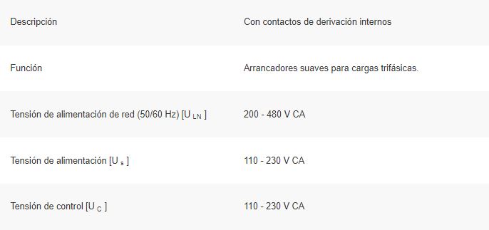 Arrancador suave, Descripción: Con contactos de derivación internos, Función: Arrancadores suaves para cargas trifásicas, Tensión de alimentación de red (50/60 Hz): ULN = 200-480 V CA, Tensión de alimentación: Us = 24 V CA / CC, Control voltaje: UC = 24 V CA, 24 V CC, clasificación asignada del motor (conexión estándar, en línea) a 400 V, 50 Hz: P = 30 kW, a 460 V, 60 Hz: P = 40 HP, corriente operativa nominal AC-53: Ie = 55 A, Voltaje operativo nominal: Ue = 200 V, 230 V, 400 V, 480 V, Conexión a SmartWire-DT: no, Tamaño de marco: FS3, Normas: IEC / EN 60947-4-2 , UL 508, CSA22.2-14