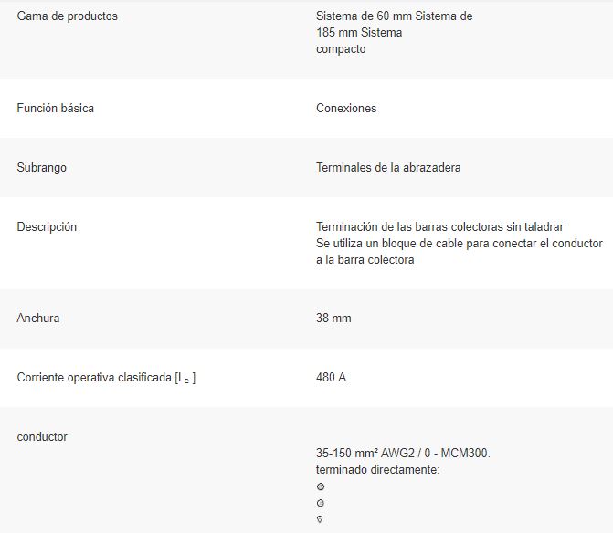Terminal de abrazadera, para SASY60i y SASY60i-compact, para barras colectoras 12x5 / 10mm y 20x5 / 10, ancho = 38mm, Ie = 480A, capacidades de terminal = 35-150mm²