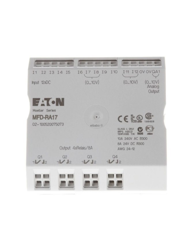 El módulo de E / S, fuente de alimentación de 24 V CC, se conecta a MFD-AC-CP8 / CP10, 12 entradas digitales de las cuales 4 entradas están disponibles como entradas analógicas, 4 salidas de relé, 1 salida analógica.