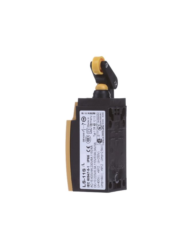 Interruptor de posición, Función básica: Interruptores de posición, Referencia de grupo de pieza: LS (M) -…, Gama de productos: Actuador de barra de resorte, Grado de protección: IP66, IP67, Características: Unidad completa, Temperatura ambiente: -25 - +70 ° C, contacto de acción rápida: sí, descripción: no se debe utilizar como interruptor de posición de seguridad, contactos N / O = normalmente abierto: 1 N / O, contactos N / C = normalmente cerrado: 1 NC, cubiertas de color: amarillo , Carcasa: material aislado.