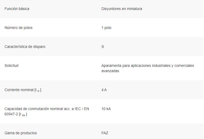 Disyuntor miniatura (MCB) FAZ, 1 polo, característica de disparo: S, corriente nominal en: 4 A, aparamenta para aplicaciones industriales y comerciales avanzadas.