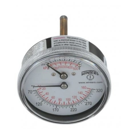 TTD404 termómetro tridictador, caratula 2.5", vástago corto, conexión posterior, presión 0-75 psi doble escala, rango 20°-160° c
