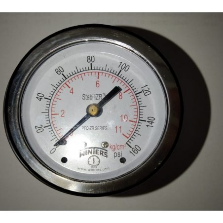 PFQ905ZRR1R3 Manómetro caratula de 2.5" conexión central posterior de 1/4" NTP rango de 0/160 psi sin glicerina