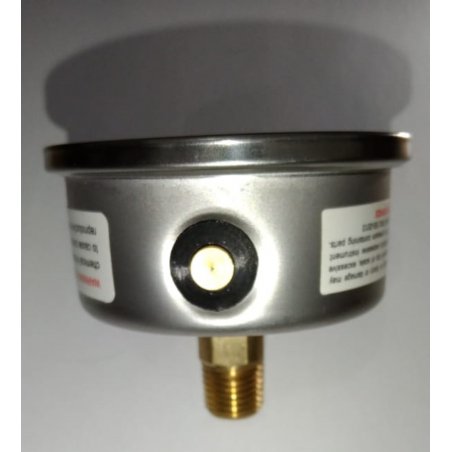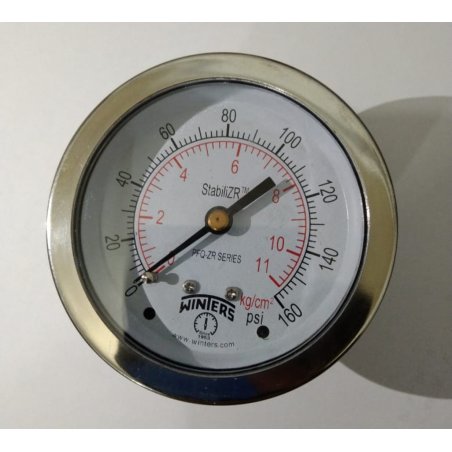 Manómetro caratula de 2.5" conexión central posterior de 1/4" NTP rango de 0/160 psi sin glicerina de acero inoxidable.