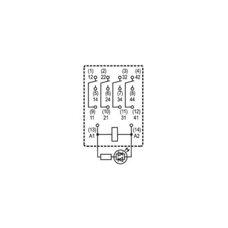 RIDERSERIES RCM, Relé, Número de contactos: 4, Contacto conmutado con pulsador de prueba AgNi 90/10, Tensión de mando nominal: 230 V AC, Intensidad permanente: 6 A, Conexión enchufable
