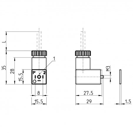 Connector Mod. 126-... DIN 43650 pin spacing 8 mm