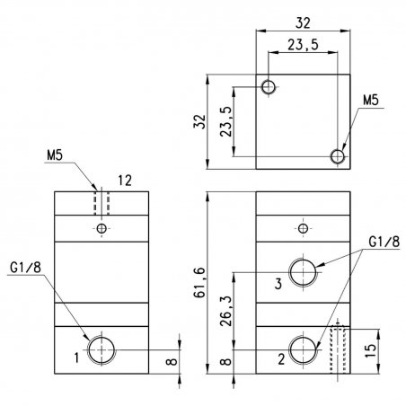 Pneumatically operated 3/2 NC amplifier valve - G1/8 ports