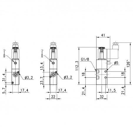 3/2-way solenoid valve, G1/8, monostable - Mod. 338..., Mod 348...
