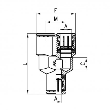 Working pressure - standard models: min -0,9 bar - max 16 bar (see tubing) - models with self-retaining device: 0 ÷ 16 bar