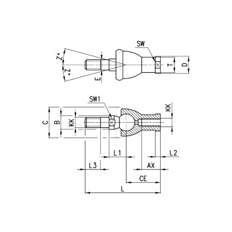 Mod. | Ø | Z | E | SW | T | D | C | B | KK | L3 | SW1 | L1 | L | CE | AX | L2 |