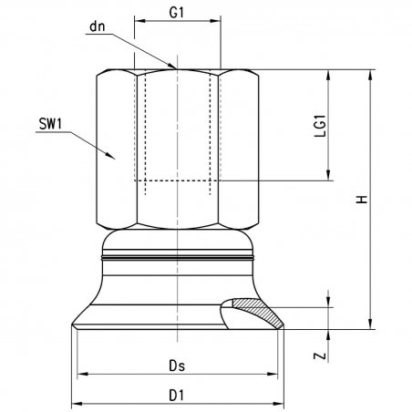 Suction pad with nipple D1 dm Ds G1 H LG1 SW1 Z Suction pad Nipple