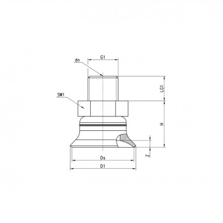 Ventosa completa D1 dn Ds G1 H LG1 SW1 Z Ventosa Niple