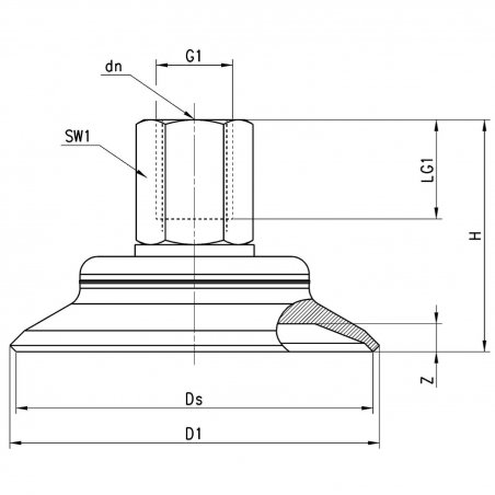 Ventosa completa D1 dm Ds G1 H LG1 SW1 Z Ventosa Niple