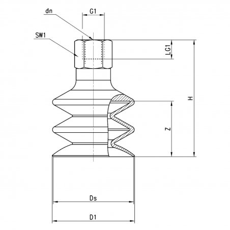Ventosa completa D1 dn Ds G1 H LG1 SW1 Z Ventosa Niple