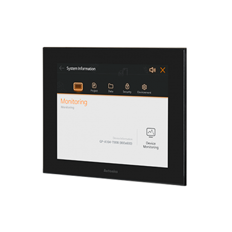 Panel gráfico de 10.4 pulgadas con display a color TFT, visualización de hasta 16,777,216 colores; alimentación 24VCC, interfase RS232C:2, USB HOST, USB DEVICE, Ethernet, CAN, Micro SD