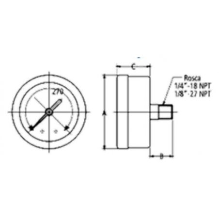 Los manómetros de 2” son fabricados en cajas de acero al carbón, el movimiento esta montado sobre la conexión, la cual esta sujeta directamente a la caja impidiendo con esto que el instrumento se descalibre cuando el usuario lo instala apoyándose directamente en la caja.