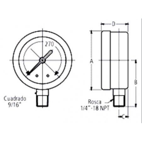 Los manómetros de 3 1/2” son fabricados en cajas de acero al carbón, el movimiento esta montado sobre la conexión, la cual esta sujeta directamente a la caja impidiendo con esto que el instrumento se descalibre cuando el usuario lo instala apoyándose directamente en la caja.