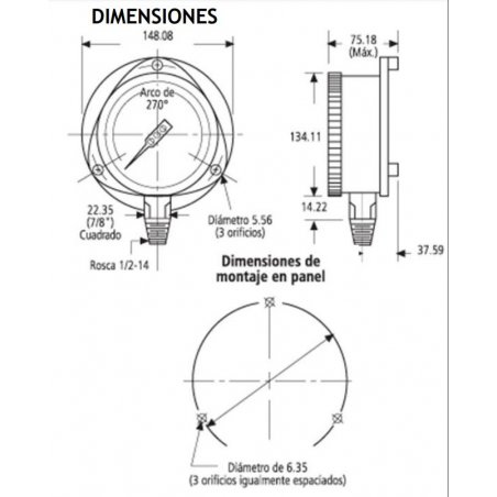 Los manómetros de 4 ½” son fabricados en cajas de frente sólido de fenol, el movimiento esta montado sobre la conexión, la cual esta sujeta directamente a la caja impidiendo con esto que el instrumento se descalibre cuando el usuario lo instala apoyándose directamente en la caja.